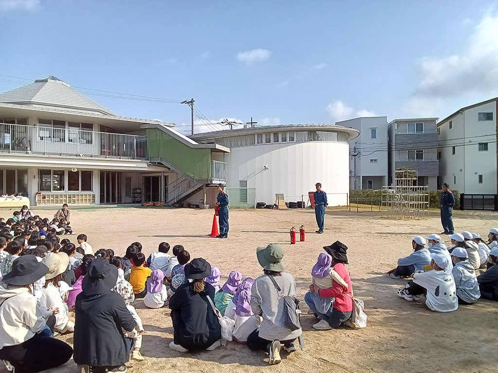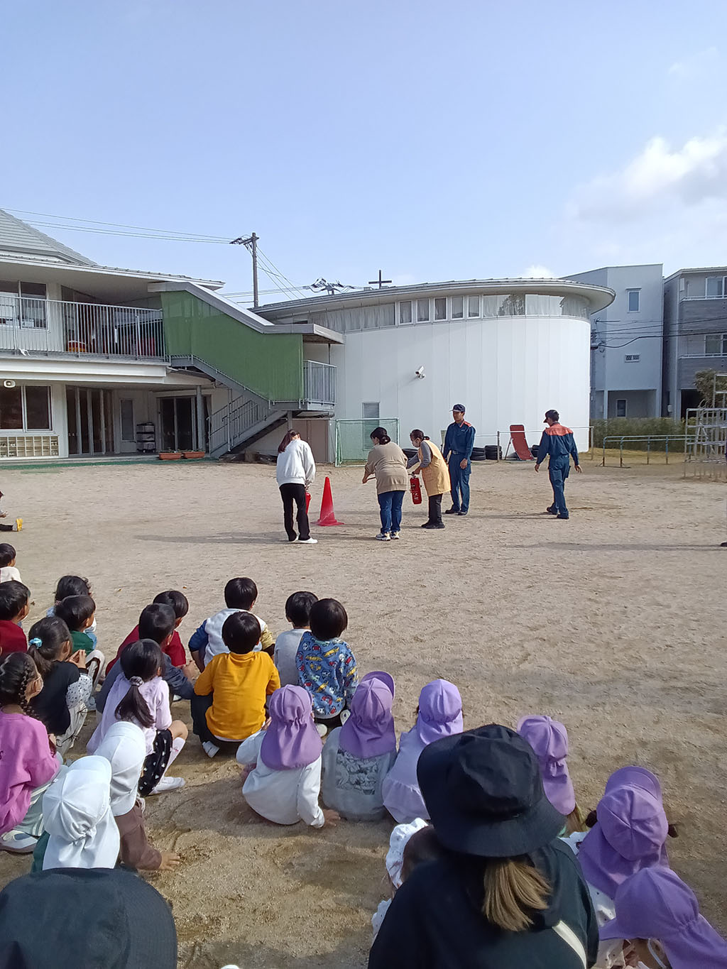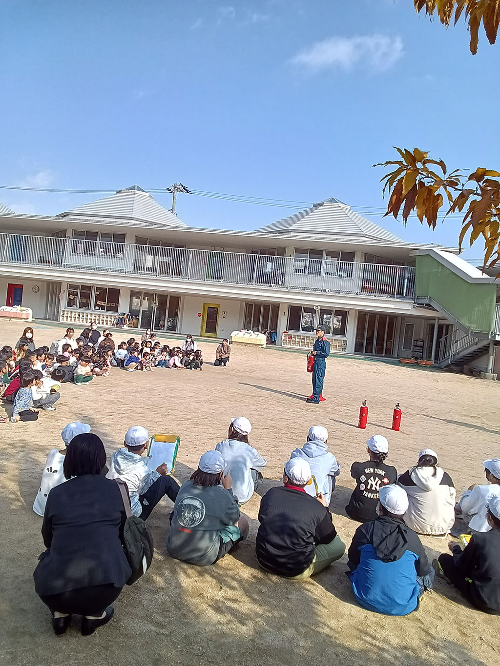 11月は消防署の方にもお越しいただき、訓練の様子を見ていただきました。