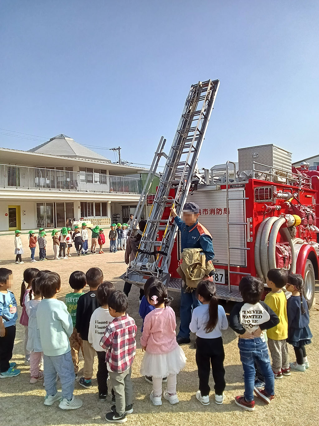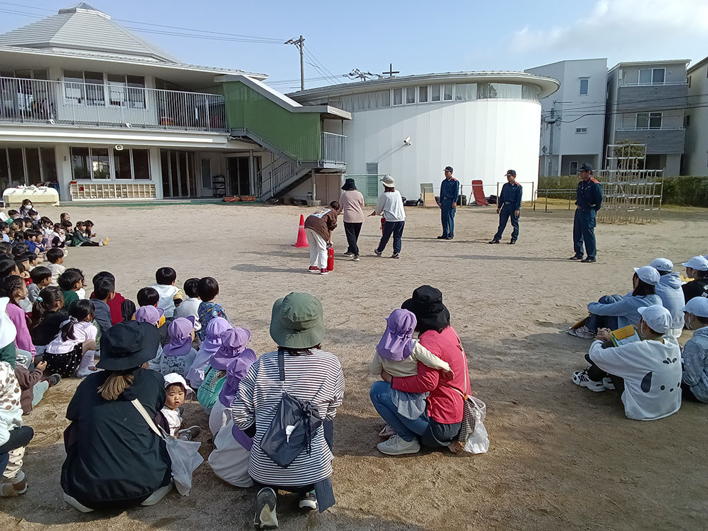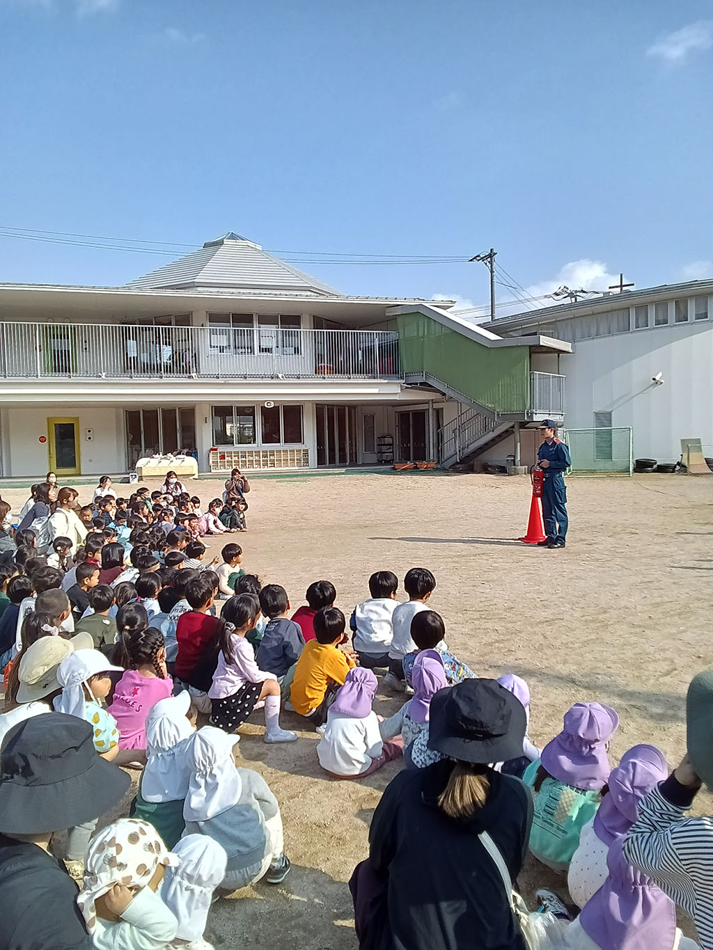 11月は消防署の方にもお越しいただき、訓練の様子を見ていただきました。